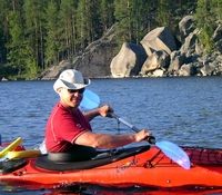 Gadatliwy i upierdliwy ale sympatyczny przedstawiciel rocznika 1971. W ekipie trzymają mnie chyba dlatego, że dbam o sprzęt wciąż coś klejąc i dorabiając. Podobnie jak reszta przyjaciół z wiosłem w łapie szukam tego czegoś nieuchwytnego lecz namacalnego co zmusza każdego z nas do powrotu na wodę. Pływam rozważnie i pokornie. Zawsze zostawiam "margines błędu do marginesu bezpieczeństwa", co niekiedy pobudza uzależnionego od adrenaliny Krakusa. Zauroczyło mnie morze. Przemierzanie wielkich przestrzeni w maleńkim kajaku naprawdę wciąga a widok horyzontu uzależnia, oby nieuleczalnie. |